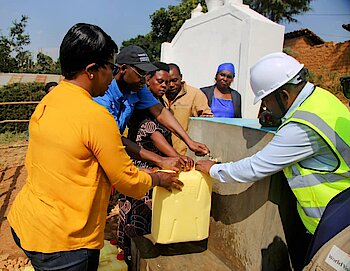 Abaturage bo mu Murenge wa Ruhunde barishimira kuba baragejejweho ibikorwaremezo by’amazi meza.