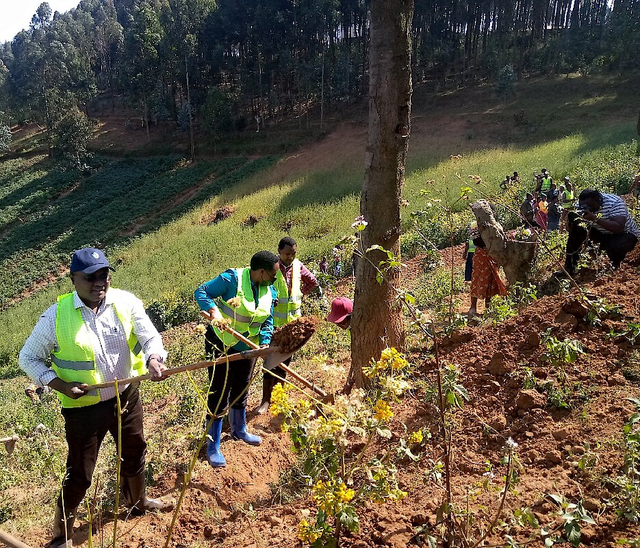 Gutangiza ku mugaragaro Icyiciro cya Kabiri cya gahunda ya Job Creation byabereye mu Mudugudu wa Rugeshi, Akagari ka Nyamicucu, Umurenge wa Butaro ahaciwe Amaterasi yikora mu rwego rwo kurwanya Isuri no kubungabunga Igishanga cy’Urugezi. Bahavuye; Abayobozi mu Nzego zitandukanye bitabiriye uyu muhango berekeje mu Murenge wa Kagogo aho basuye Ishyirahanweryitwa INKANDA Tailoring ry’Abagenerwabikorwa ba Job Creation/Skills Development Program bakora Ibikorwa by’Ubudozi; aho bavuye berekeza mu Murenge wa Cyanika aho bagiranye ibiganiro n’abandi Bagenerwabikorwa bya Job Creation biga Imyuga irimo Ubudozi, Ubukanishi bw’Ibinyabiziga, Gusudira, Ubwubatsi, Gutunganya Imisatsi n’Ibindi; hakaba n’Abagenerwabikorwa b’iyi gahunda bimenyereza Umwuga