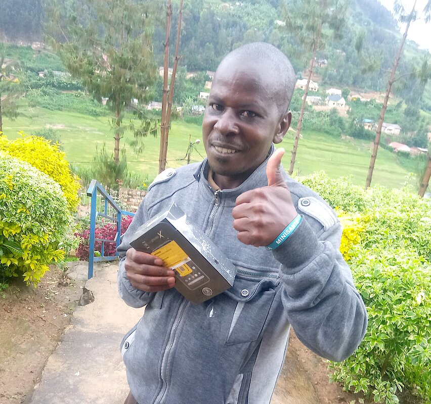 Amaze gushyikirizwa Telefone, uwitwa NSENGIYUMVA Evariste yagize ati:"Guhabwa Telefone nk'iyi igezweho bivuga kumpa Ubushobozi n'Ubumenyi. Ndashimira Umukuru w'Igihugu ku byiza byinshi akomeje kugeza ku Gihugu n'abagituye. Nzayifata neza kandi nyibyaze umusaruro."
