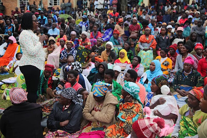 Mu nama Umuyobozi w’Akarere, Mukamana Soline yagiranye n’abaturage b’Akagari ka Ndago, mu Murenge wa Rusarabuye kuri uyu wa gatatu bitabiriye inteko yabasabye kwirinda ihohotera rishingiye ku gitsina.
