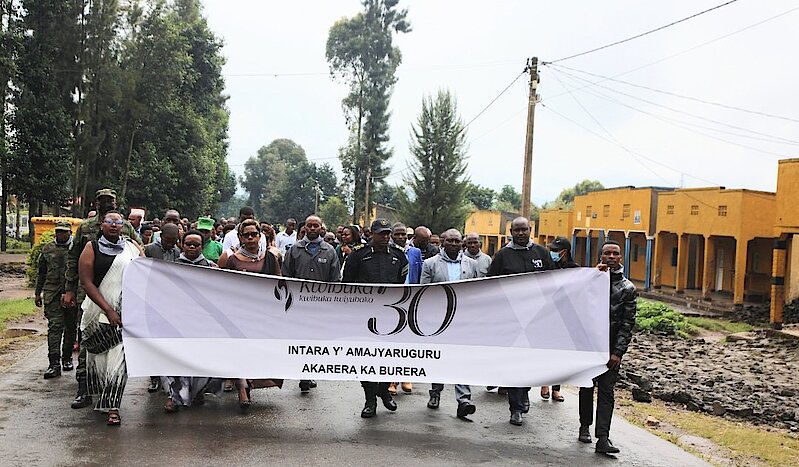 Igikorwa cyo kwibuka ku nshuro ya 30 Jenoside yakorewe Abatutsi mu 1994 ku rwego rw’Akarere ka Burera cyitabiriwe na Perezidante w'Inama Njyanama y'Akarere, NYIRAMANA Christine, abagize Komite Nyobozi y'Akarere n'Abayobozi b'inzego zitandukanye barimo Umuyobozi wungirije wa 503 Bde , Col. Jean de la Croix BAZIRUWIHA, Umuyobozi wa Polisi mu Ntara y'Amajyaruguru, ACP Edmond KALISA, Umuyobozi w'Inkeragutabara mu Karere, Lt Col Fred NYIRINKWAYA, Umuyobozi wa Polisi mu Karere ka Burera, SSP Aphrodis NKUNDINEZA, Major Didace MUSONI n’Umuyobozi w’Urwego rw’Ubugenzacyaha mu Karere ka Burera, RWEMA Isaac.