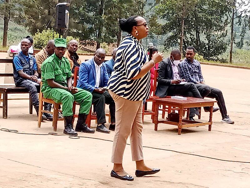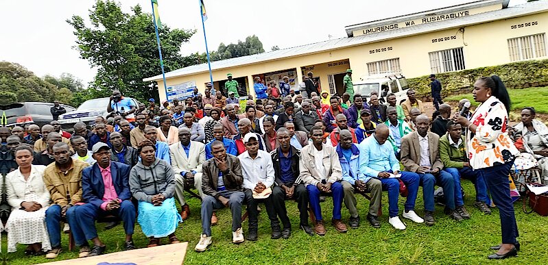 Mu butumwa Hon. NIRERE yagejeje ku Baturage b’Umurenge wa Rusarabuye yabasabye kujya bemera no kubahiriza ibyemezo byafashwe n’Inzego z’Ubutabera hagamijwe kubahiriza amategeko, kwirinda ibihombo biteza bamwe ubukene mu miryango imwe n’imwe; bikaba kandi bituma habaho kwirinda amakimbirane.