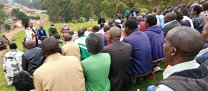 Ku ikubitiro; iyi gahunda yo gusura Abaturage aho batuye yahereye mu Murenge wa Rurasabuye; aho, Umuvumyi Mukuru, Hon. NIRERE Madeleine; afatanyije n’Umuyobozi w’Akarere, Mme UWANYIRIGIRA Marie Chantal; abagize inama y’umutekano itaguye y’Akarere na bamwe mu Bakozi b’Akarere bakiriye; banakemura ibibazo by’Abaturage babagejejeho.