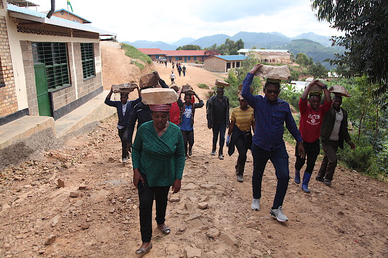Ku rwego rw'Akarere; umuganda wabereye mu Kagari ka Ndago, Umurenge wa Rusarabuye; aho Honorable Depite MUREKATETE Marie Therese, Honorable Depite HINDURA Jean Pierre, Perezidante w'Inama Njyanama y'Akarere, Dr NYIRAMANA Christine na bamwe mu bandi bagize Inama Njyanama y'Akarere , Umuyobozi w'Akarere, Mme UWANYIRIGIRA Marie Chantal, Umunyamabanga Nshingwabikorwa w'Umurenge wa Rusarabuye, Inspector of Police (IP) MUGENZI Jean Bosco; wari uhagarariye Umuyobozi wa Polisi mu Karere n’Abayobozi bahagarariye izindi Nzego zitandukanye mu Karere bafatanyije n’Abaturage mu gikorwa cyo kwikorera amabuye yo kubaka igikoni cy’Urwunge rw’Amashuri rwa Ndago n'ibikorwa byo gukomeza imirimo yo kubaka iki gikoni.