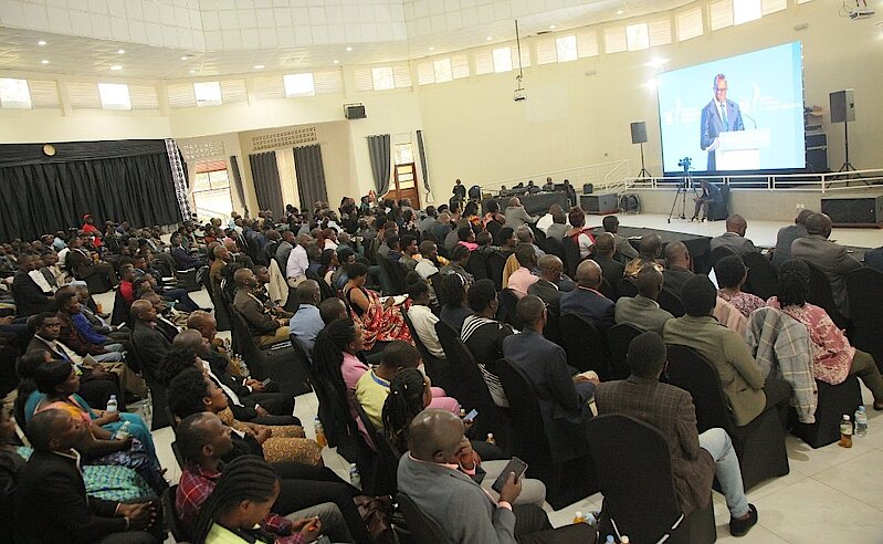 Umuyobozi w’Akarere wungirije ushinzwe iterambere ry’ubukungu, NSHIMYIMANA Jean Baptiste , Visi Perezida w'Inama Njyanama y'Akarere , UWAMWIZA Catherine n'abaturage barenga magana atatu (300) bakurikiye ibiganiro byatanzwe mu Inama y'Igihugu y'Umushyikirano muri KCC; bakaba bakurikiye ibiganiro bari mu Kigo cy'ubutore cya Nkumba, mu Murenge wa Kinoni.