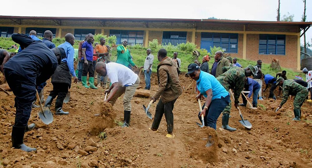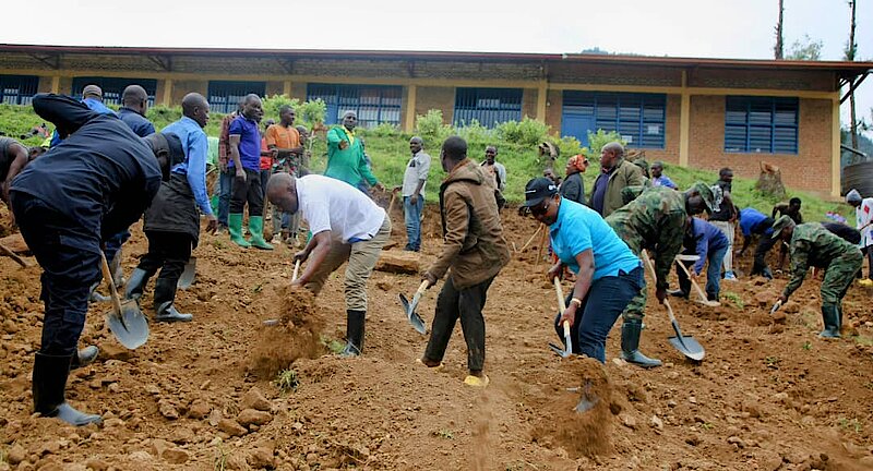Umuyobozi w'Akarere, Mukamana Soline n'abandi bagize Komite Nyobozi y'Akarere, Visi Perezida w'Inama Njyanama y'Akarere, Uwamwiza Catherine, Chief Inspector of Police (CIP) Mugenzi Jean Bosco wari uhagarariye Umuyobozi wa Polisi mu Karere muri iki gikorwa bakoreye umuganda mu Kagari ka Rutovu, mu Murenge wa Kinyababa aho abawitabiriye basije ikibanza ku Rwunge rw’Amashuri rwa Rutovu ahazubakwa ibyumba by'amashuri.