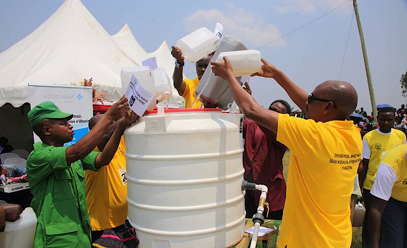 Muri icyo gikorwa cy'ubukangurambaga, World Relief Rwanda yatanze ibikoresho biyungurura amazi mabi akaba meza (Filters) ku miryango 20 yo muri uwo Murenge mu rwego rwo gufasha abayigize n'abaturanyi babo kunywa amazi meza;babasaba gufata neza ibyo bikoresho.