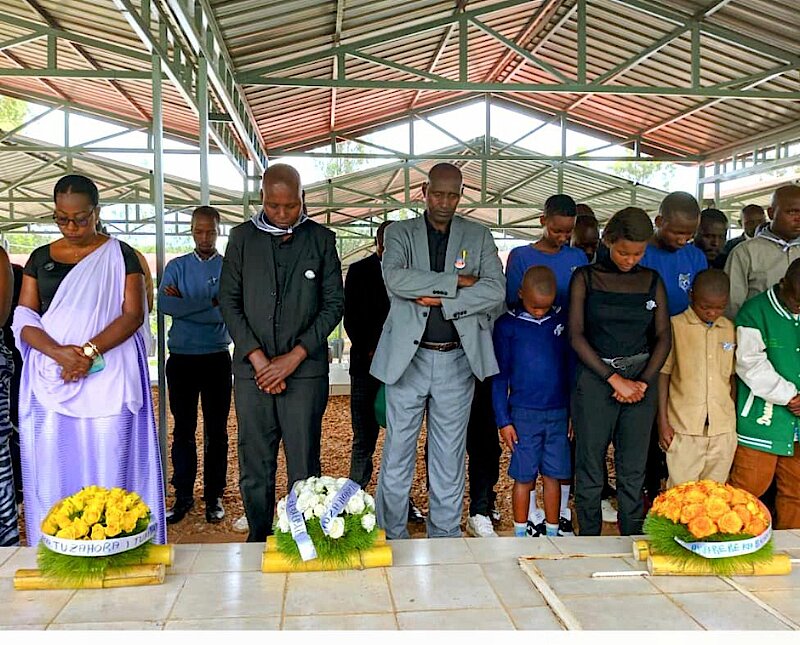 Abagize iryo tsinda bafashe umunota wo kwibuka abazize Jenoside yakorewe Abatutsi; bashyira n’indabyo ku imva ishinguyemo imibiri igera ku bihumbi ijana na bitanu by'Abatutsi bazize Jenoside bahiciwe.
