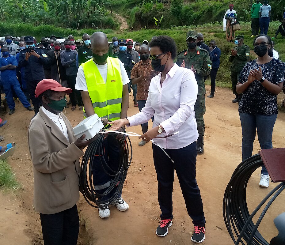 Nyuma yo kwifatanya n'Abaturage mu Muganda wabereye mu Kagari ka Kivumu no kwakira Ibibazo n'Ibitekerezo babyo; Hon. MUKABALISA Donathile yakomereje mu Kagari ka Nyamugali aho yayoboye igikorwa cyo gutanga Umuriro w'Amashanyarazi ku Ingo 40 zihatuye.