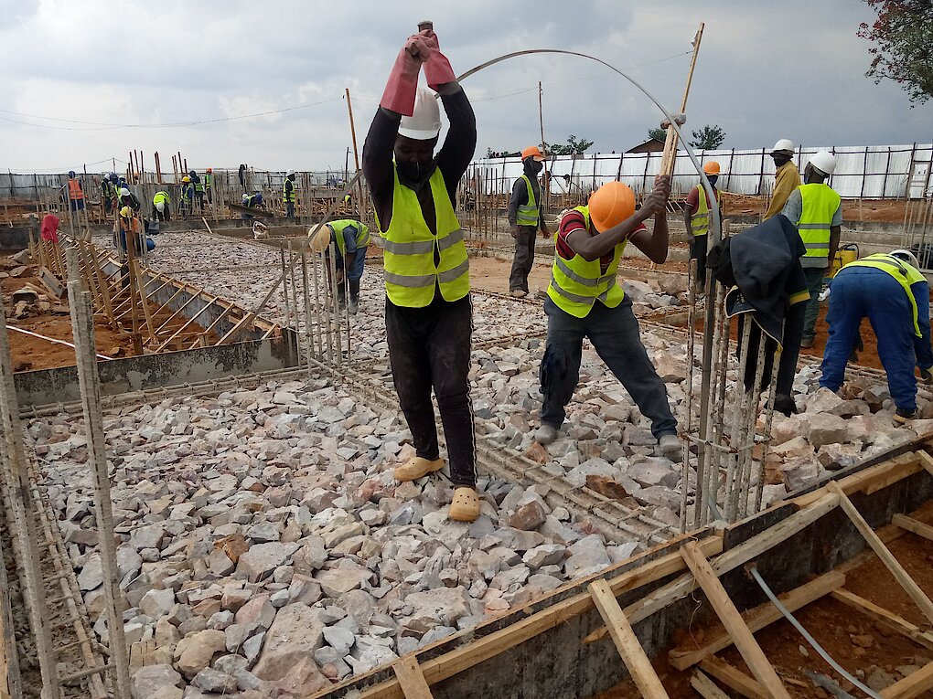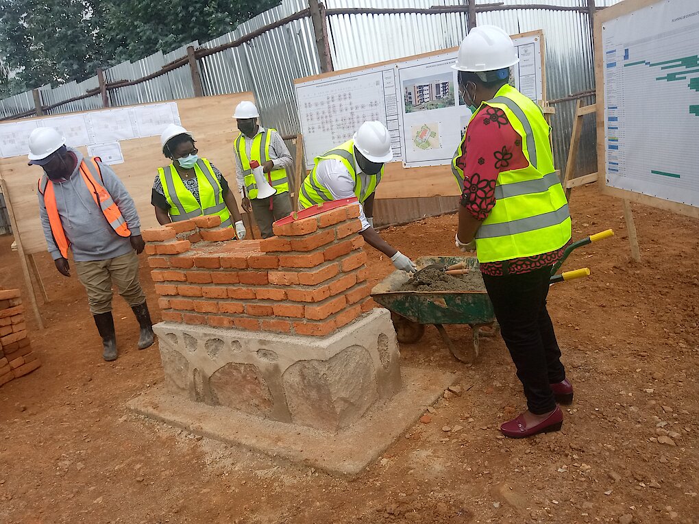 NYIRARUKUNDO Gérardine ni umwe mu Rubyiruko rwahawe Akazi. Akoresha Inyundo y’Abubatsi yifashishwa mu kumena no gutunganya Amabuye yo kubakisha.